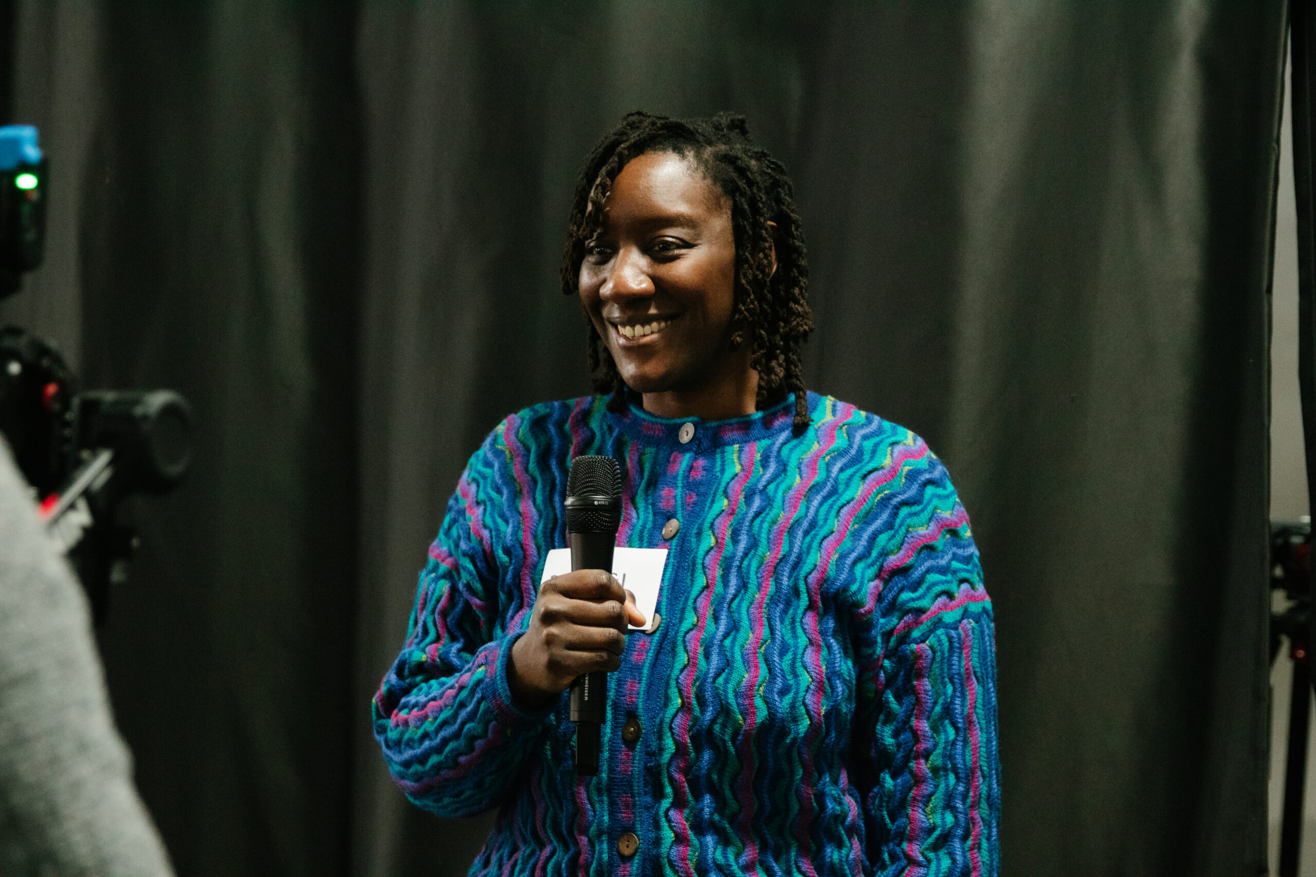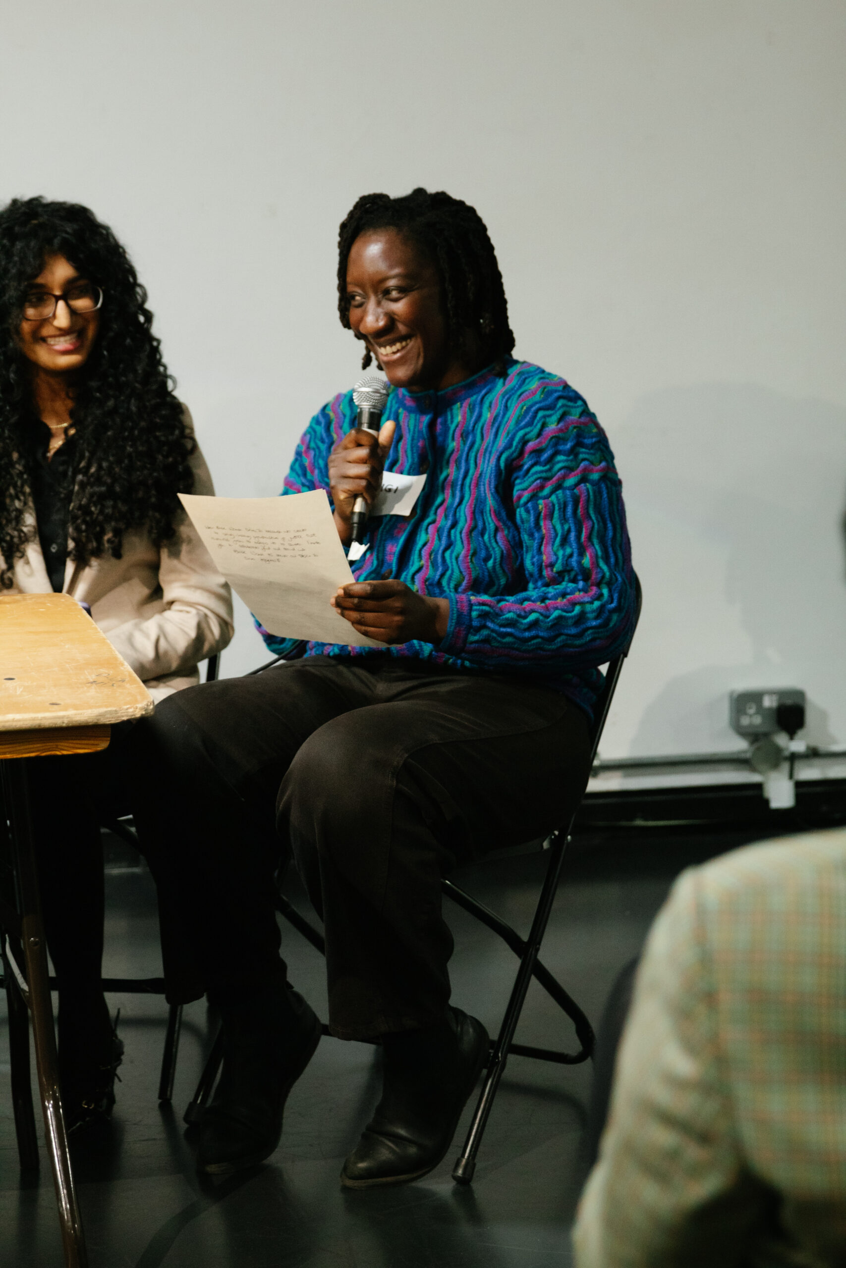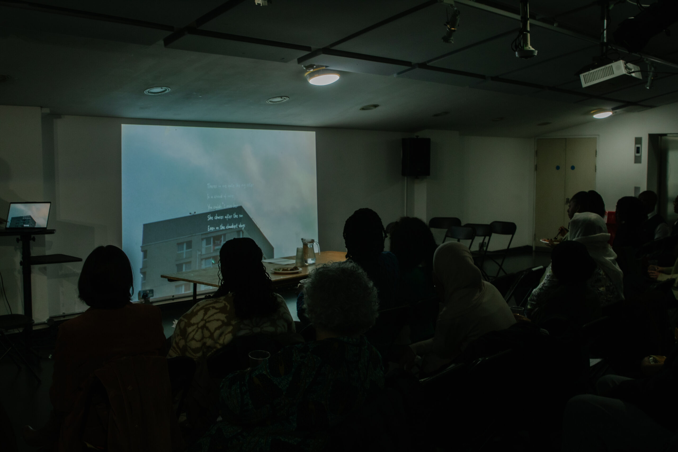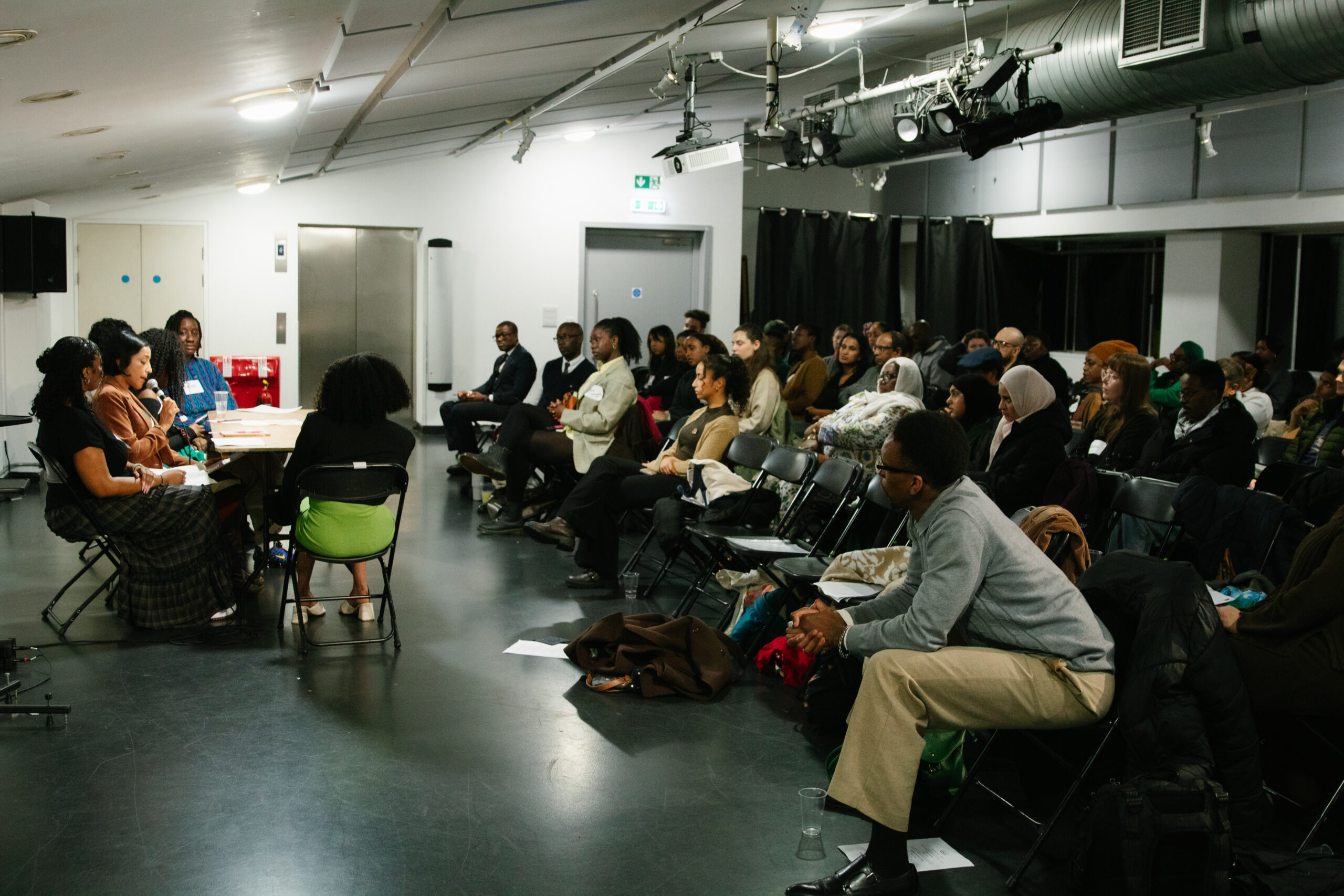 After a short break, attendees sat to watch the premiere of For My Sister – a short film directed by Mia Harvey and produced by Tolu Stedford, made with the generous support of the Media Trust. The film follows one of this year’s Peer Researchers, Xaira Olaifa- Adebayo, in their journey to conduct research on the mental health impacts of sickle cell disorder diagnoses for young Londoners from the Black community.