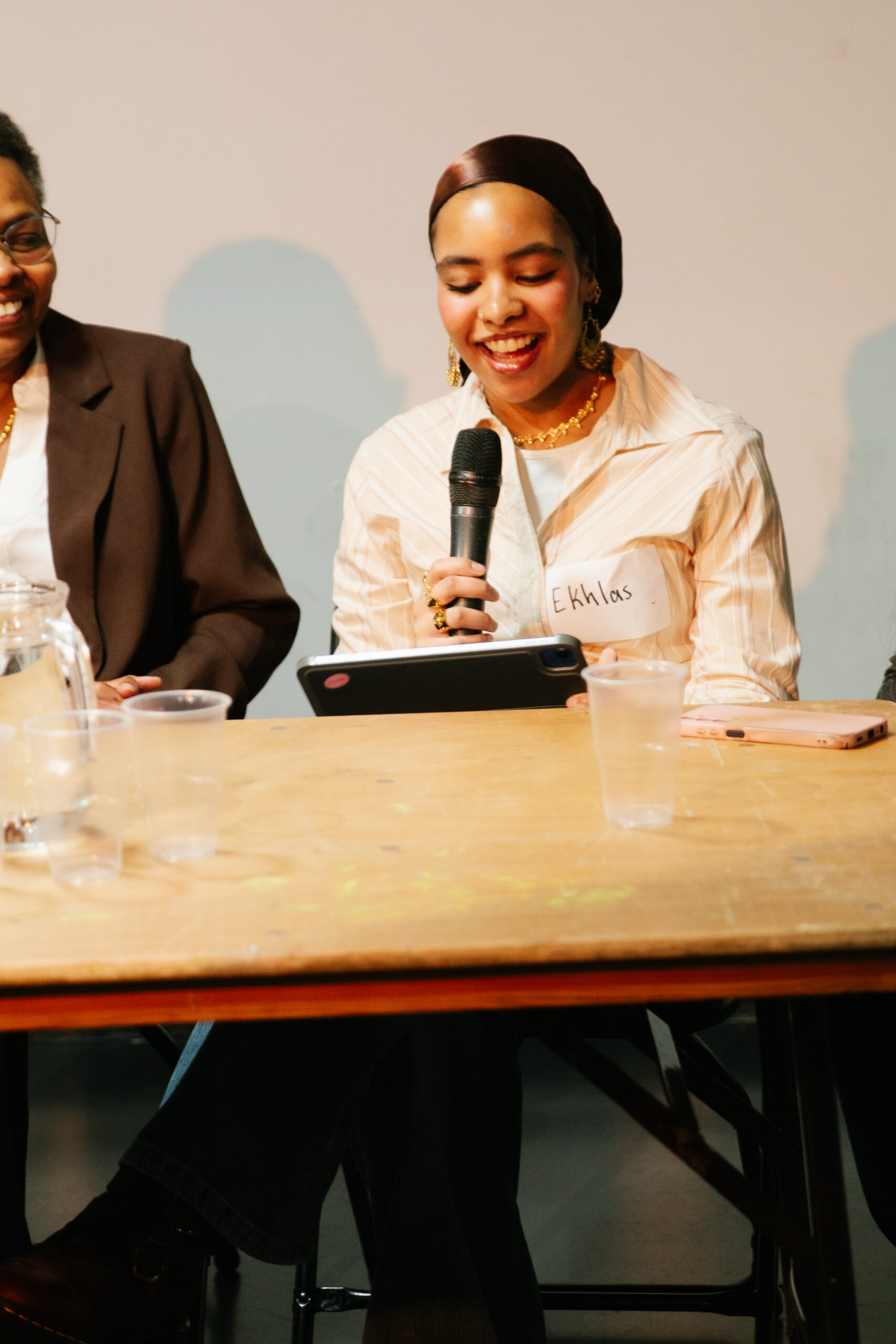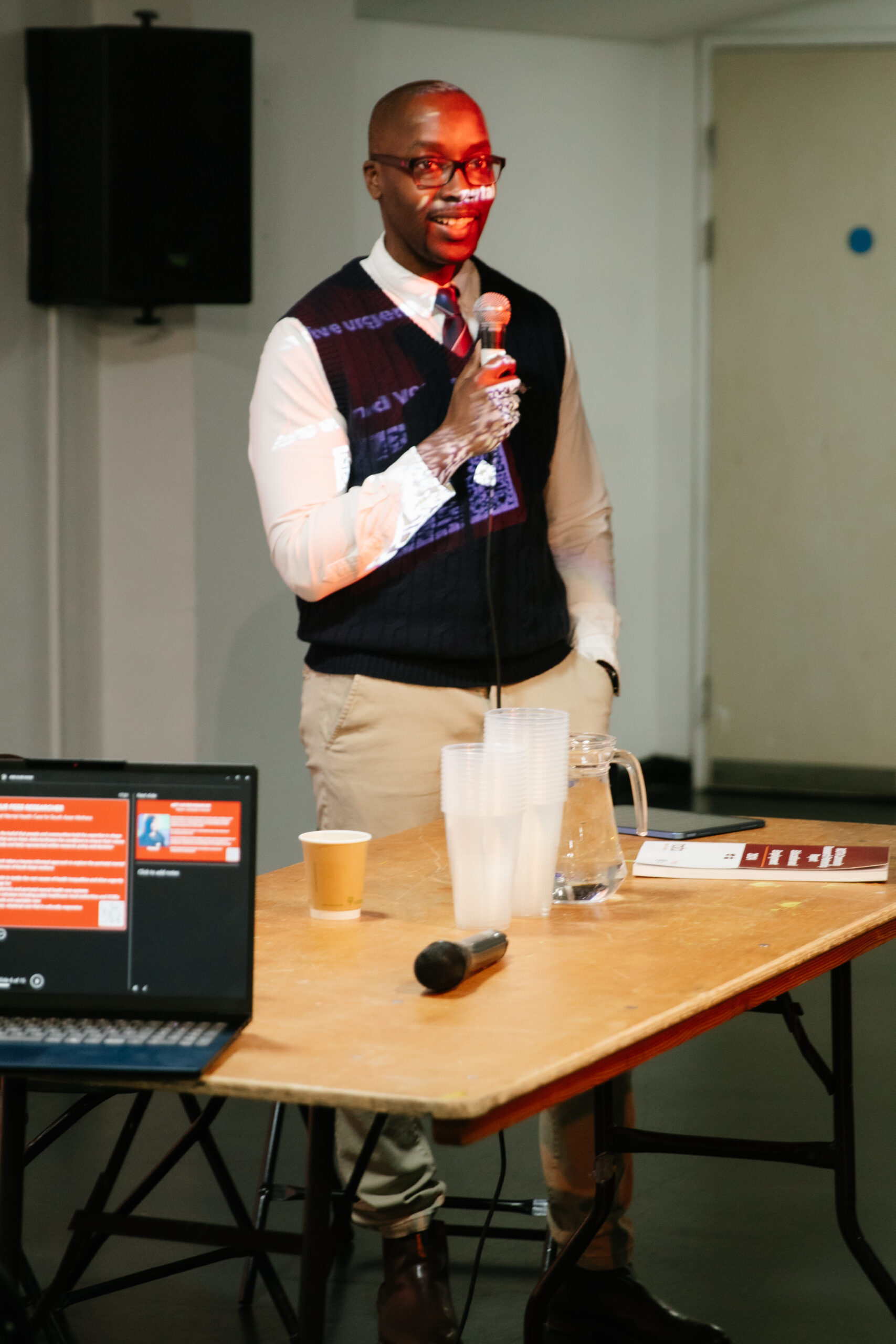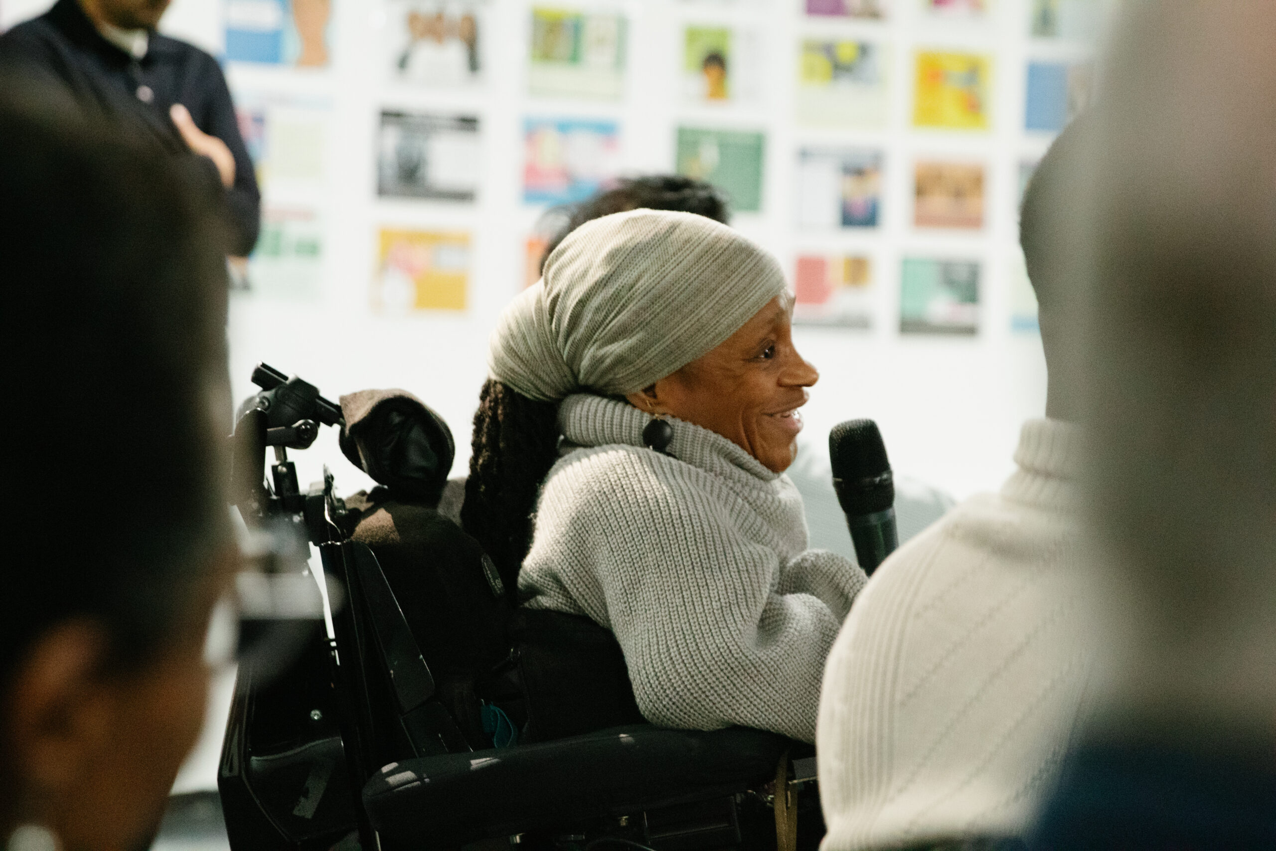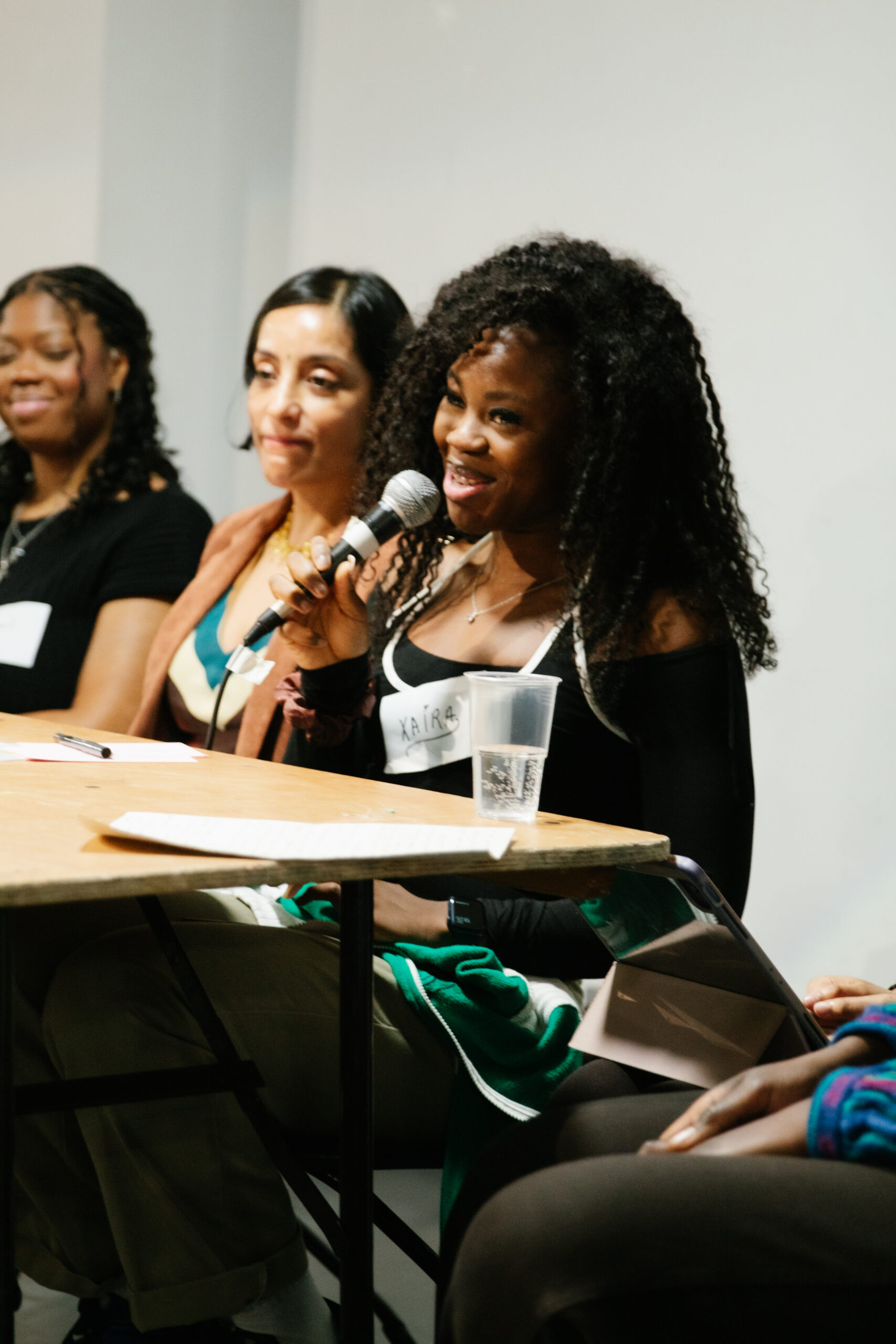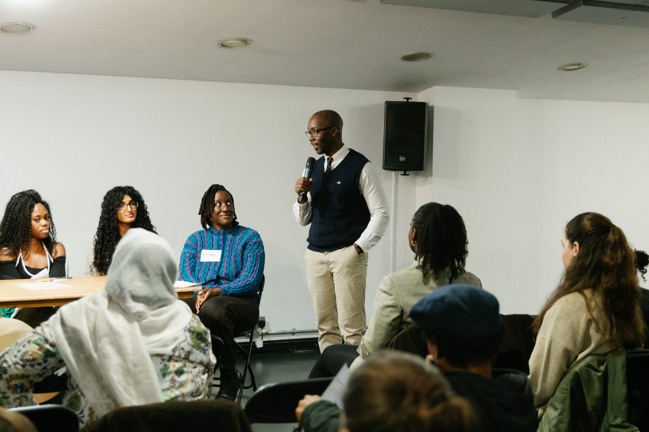 After a short break, attendees sat to watch the premiere of For My Sister – a short film directed by Mia Harvey and produced by Tolu Stedford, made with the generous support of the Media Trust. The film follows one of this year’s Peer Researchers, Xaira Olaifa- Adebayo, in their journey to conduct research on the mental health impacts of sickle cell disorder diagnoses for young Londoners from the Black community.