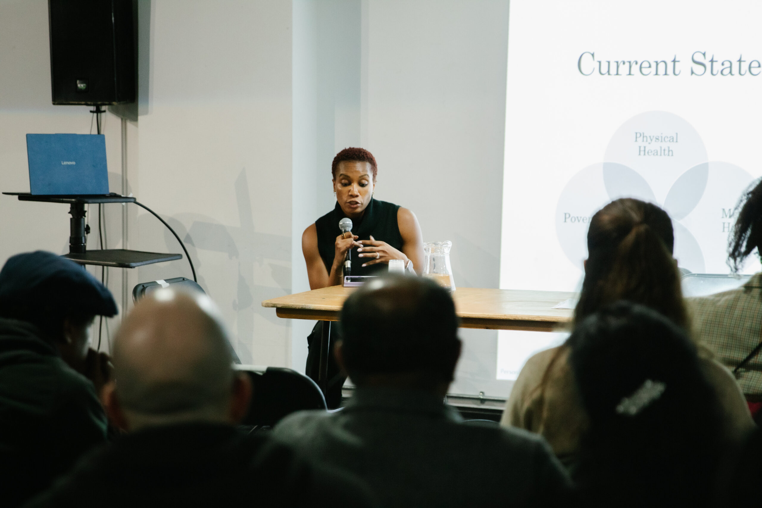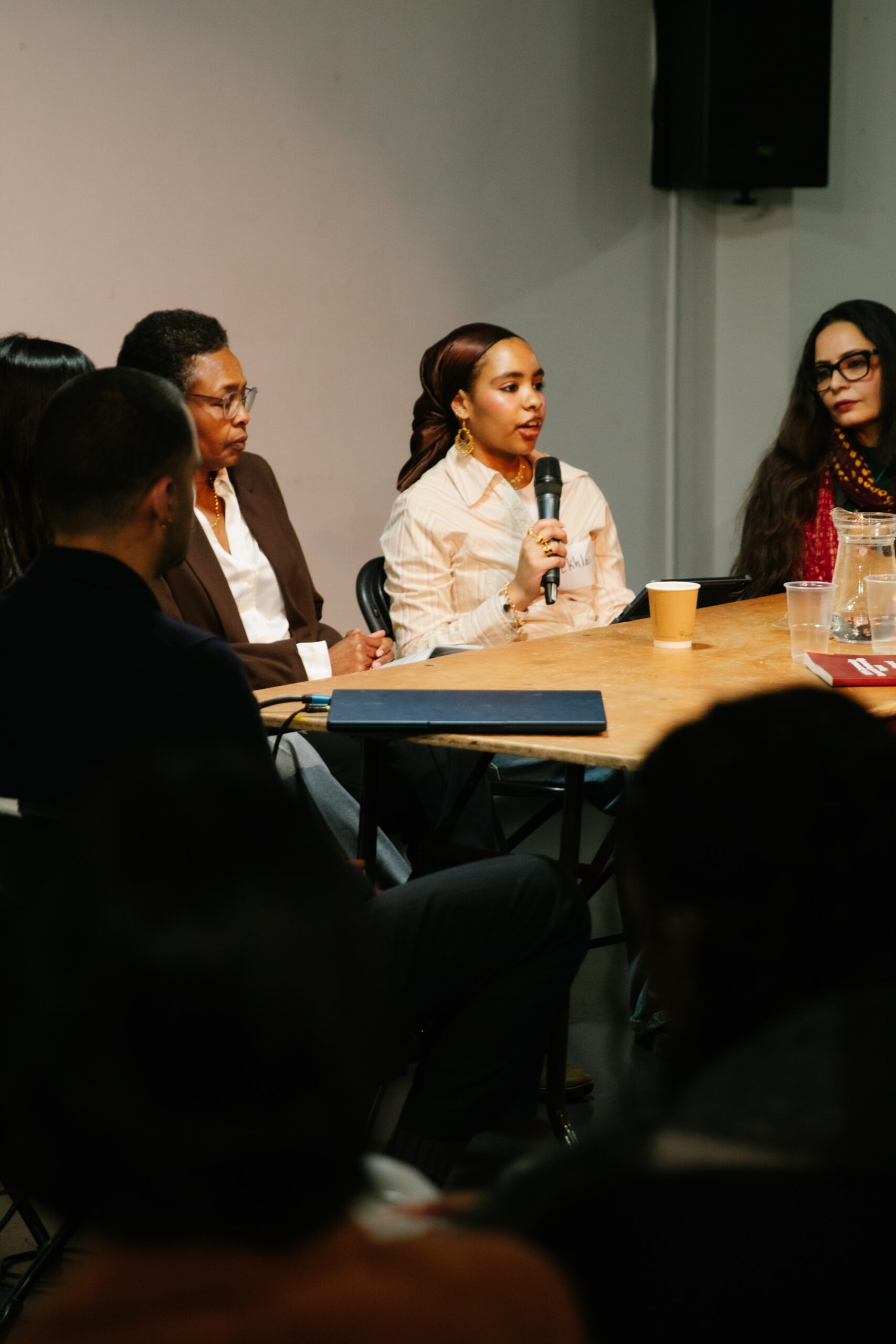 It was then time for the second panel, convened by ROTA associate Nikel Hector-Jack. Abigail Green spoke first, discussing her research with Black women with ‘hidden’ disabilities, and the impacts of healthcare failings and wider social biases. Anita Kambo then outlined her research on the perinatal mental health experiences of South Asian mothers, before Xaira discussed their work further. Aliza Mathew spoke about her work uncovering the mental health experiences of South Asian students in British universities. Finally, Birungi Kawooya closed the panel with some reflections on her time working with the Black Women’s Kindness Initiative, and highlighted the need for more funding and space to be given for creative practice for our communities.